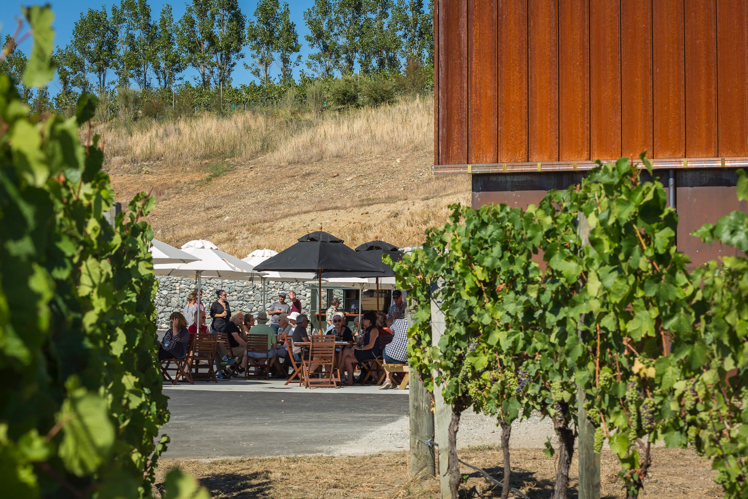 Followed by lunch in the Vines at a choice of Aurum, Two Paddocks, Akarua, Gibbston Valley or Mt Difficulty. Here at the delicious lunch under the cool shade of the magnificent Aurum Winery (now Matt Connell Winery). The cool was soooo welcome in 36 degrees!